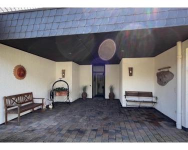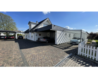 Zur Wohnung gehört ein überdachter KFZ-Stellplatz und ein Hauswirtschaftsraum mit Waschmaschine und Trockner.