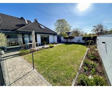 Die Wohnung besteht aus einem Schlafzimmer, einem Office/Gästezimmer und einem Wohnbereich mit Ausgang in den gepflegten Garten (mit eigener Terrasse), einer Küche mit großer Einbauküche, einem geräumigen Flur, sowie einem sehr schönen, hochwertigen ausgestattetem Duschbad.