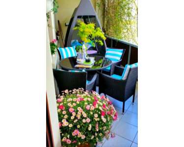 Platz für einen Esstisch in der Küche und Zugang zum Balkon