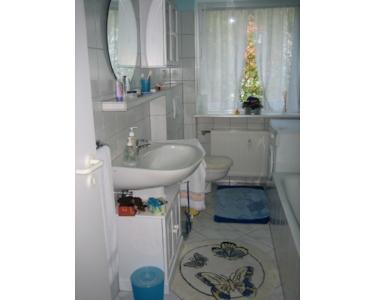 Das im Jahr 2000 sanierte Bad hat ein Fenster, Badewanne, Waschtisch und eine Toilette.
