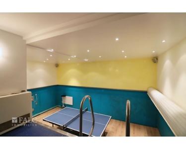 Ein besonderes Highlight ist der Indoor-Poolbereich, der aktuell nicht genutzt wird, jedoch nach einer Instandsetzung wieder in vollem Glanz erstrahlen kann – ideal für alle, die Wellness im eigenen Zuhause schätzen. Ergänzt wird das Wohlfühlangebot durch eine eingebaute Sauna, die zum Entspannen nach einem langen Tag einlädt.