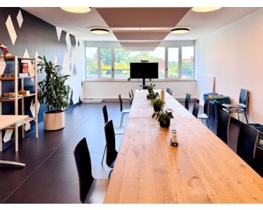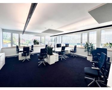 Zur Anmietung steht eine repräsentative Bürofläche von ca. 648 m² im 1. Obergeschoss eines hochwertigen und energieeffizienten (KfW55) Feng-Shui Hauses.