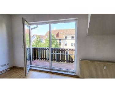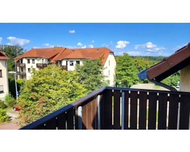 Das nach Süden ausgerichtete Wohnzimmer bietet direkten Zugang zum Balkon und eröffnet einen angenehmen Weitblick über das Wohnareal bis in Richtung Wurzen.