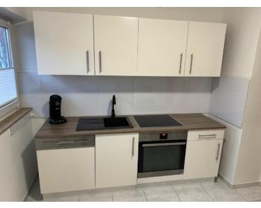 Die moderne Küche kann inklusive Elektrogeräten, Kühlschrank und Spülmaschine für 300 € übernommen werden – eine praktische und kostensparende Lösung für den sofortigen Einzug.