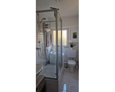 Das freundliche Tageslichtbad mit Dusche sorgt für einen entspannten Start in den Tag und verfügt über einen Waschmaschinenanschluss sowie eine vorhandene Waschmaschine, die auf Wunsch übernommen werden kann. Die Küche kann ebenfalls übernommen werden und wird durch einen separaten Abstellraum mit Fenster perfekt ergänzt – ideal für Ordnung und zusätzlichen Stauraum.