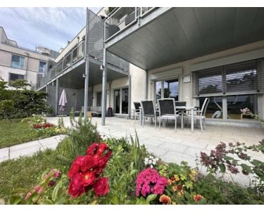 Exklusive EG-Wohnung mit Hauscharakter: 46 m² überdachte Terrasse, Garten, A+ Energie, 2 Carports