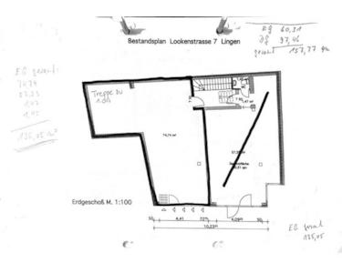 Dieses vielseitig nutzbare Ladenlokal befindet sich in erstklassiger Lage direkt in der Fußgängerzone der Lingener Innenstadt und bietet optimale Voraussetzungen für eine erfolgreiche Geschäftstätigkeit. Die Immobilie erstreckt sich über zwei Ebenen mit einer repräsentativen Verkaufsfläche im Erdgeschoss (ca. 74,74 m²) sowie zusätzlichen, flexibel nutzbaren Flächen im Obergeschoss (ca. 110,38 m²).