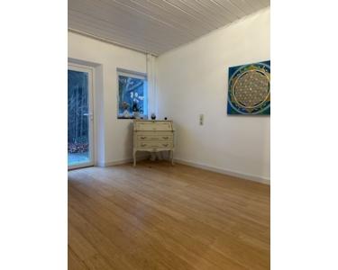 Der Bungalow wird über die mit PVC-Boden ausgelegte Diele mit Garderobe begangen. Der angrenzende Büro- oder Praxisraum ist mit Parkett ausgelegt. Der Flur ist ebenfalls mit Parkett ausgelegt. Die Küche, die Abstellkammer und das WC sind mit Fliesenboden. Der weitere Büro- oder Praxisraum ist ebenfalls mit Parkett ausgelegt. Es besteht Zugang zur Terrasse mit dem großen angrenzenden Garten, der zum Entspannen einlädt. Das deckenhoch hell geflieste Bad ist mit Wanne und Waschbecken ausgestattet.