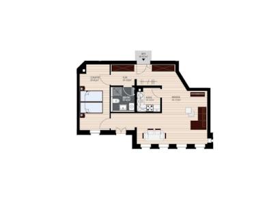 Hier handelt es sich um eine 61,50m² Wohneinheit im 3. Obergeschoss, welche aus einem offenem Wohnbereich und einem Schlafzimmer besteht, welches vom Flur und vom Wohnzimmer zugänglich ist. Die Küche befindet sich räumlich abgetrennt im Wohnzimmer. Zugehörig ist ebenfalls ein Keller.