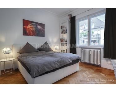 Die Wohnung ist hochwertig möbliert und hat durch den geschmackvollen Mix aus Designer-Möbeln und Altbau ihren ganz eigenen Charme.