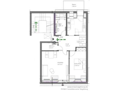 Die 2-Raum-Wohnung im Dachgeschoss ist wie folgt aufgeteilt:
