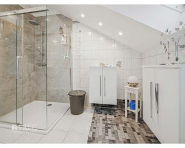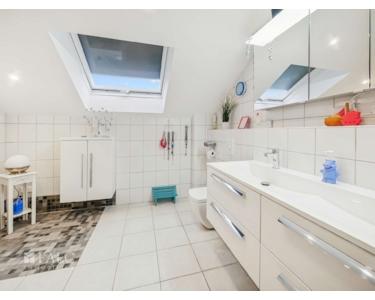 Im Obergeschoss finden wir eine praktische Aufteilung vor: 2 Kinder-/Arbeitszimmer, 1 Elternschlafzimmer sowie ein Tageslichtbad mit großzügigem Duschbereich. Zum räumlichen Wohlbefinden trägt bei, dass die Zimmer hier offen bis unter das Dach gehalten sind! Und in den Kinderzimmern ist eine zweite Ebene zum Schlafen oder Spielen eingebaut! Kinder und Jugendliche werden es lieben und diese „Räuberhöhlen“ schnell für sich entdecken…