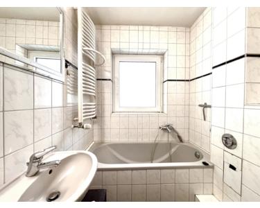 Das Tageslichtbad ist mit einer kleinen Badewanne ausgestattet und lädt nach einem langen Arbeitstag zum Entspannen ein. Die voll ausgestattete Einbauküche ist bereits im Kaufpreis enthalten.