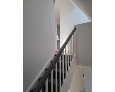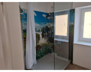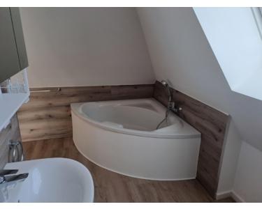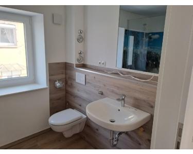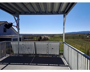 Im OG ist eine große Wohnküche, ein großes Wohnzimmer, ein Duschbad und ein "Mini" HWR, sowie ein 16m2 großer Balkon. Im DG sind zwei Schlafzimmer, ein Badewannenbad und ein 9m2 Balkon. Das Dach ist durch Dachaufdämmung und Einblasdämmung hitzegeschützt. Zudem kühlt die FBH im Sommer.