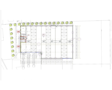 Die Halle ist ebenerdig mit Lkw anfahrbar und verfügt über ein 3 × 3 m großes Sektionaltor, 3 Logistikrampen sowie eine separate Auffahrt.
