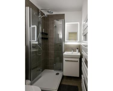 In der gesamten Wohnung, mit Ausnahme des Badezimmers, ist edler und wasserfester Vinylboden in schicker Holzoptik verlegt. Das Badezimmer ist mit neuen Premium-Elementen ausgestattet und beinhaltet eine Dusche, ein WC, einen Waschtisch mit Unterschrank, einen modernen Spiegelschrank mit integrierter Beleuchtung und wird durch die hochwertigen Fliesen in schicker Optik abgerundet.