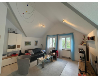 Sehr schöne 2-Zimmer-Wohnung, die ein Architekt für seine Frau gebaut hat. Großzügiges Wohn- und Esszimmer, Schlafzimmer mit Zugang zur Dachterrasse, Tageslichtbad, Einbauküche mit Fenster, Abstellraum mit eingebautem Kleiderschrank, Vinylböden, Fliesen im Bad, dreifach verglaste Fenster