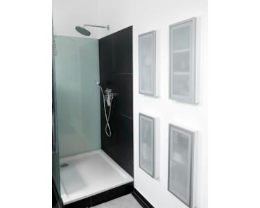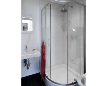 und ein Gästebad mit Dusche und WC sowie Waschmaschinenanschluss.