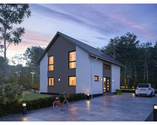 ■ Rohbau (geschlossene Gebäudehülle) mit Fenstern, Haustür1 inkl. Dacheindeckung