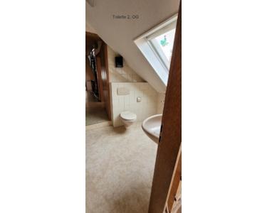 Im 2. OG befindet sich das Gäste-WC, das direkt angrenzende Zimmer kann als Büro genutzt werden. Vom Gäste-WC kommt man in den kleinen Dachbodenbereich, welcher ausbaufähig ist. Dort befindet sich bereits ein Heizkörper und es ist auch Dachisolierung angebracht.