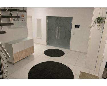 Die klare Raumstruktur, hochwertige Materialien und die frei tragende Granittreppe als zentrales architektonisches Element prägen den Charakter des Hauses. Großzügige Grundrisse, helle Räume und eine intelligente Trennung der Wohnbereiche schaffen ein ruhiges, hochwertiges Wohngefühl.