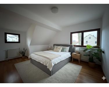 Bei den Fotos handelt es sich teilweise um mit KI bearbeitete maßstabsgetreue Fotos. So oder so ähnlich könnten die Räume aussehen.
