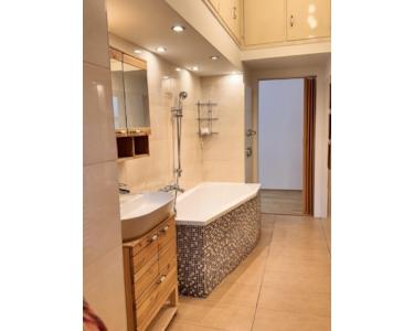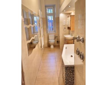 * modernes Bad mit Wanne, Waschbecken, WC, ausreichend