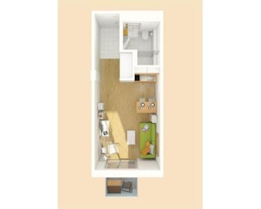 Das Appartement verfügt über ein Zimmer mit Einbauküche und Duschbad. Durch einen Fahrstuhl gelangt man bequem ins entsprechende Stockwerk. Beheizt wird die Eigentumswohnung, die sich in Studiosus 4 aus dem Jahr 2014 befindet, per Fußbodenheizung. Zur Wohnung gehören auch ein Balkon sowie ein absperrbarer Spind im Keller.