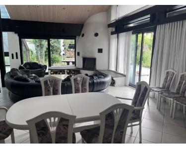 - Großzügiger Wohn-/Essbereich mit Kamin und durchgehender Fensterfront