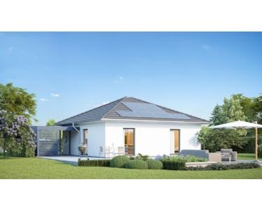 Der behagliche Bungalow mit Walmdach punktet mit einem gut durchdachten Grundriss. Der offen gestaltete Wohn-/Ess- und Kochbereich ist lichtdurchflutet. Ein praktischer Hauswirtschaftsraum ist direkt neben der Küche platziert. Komplettiert wird das Raumangebot mit einem Gäste-WC, das optional auch als Duschbad ausgeführt werden kann, einer Diele und einem Haustechnikraum.