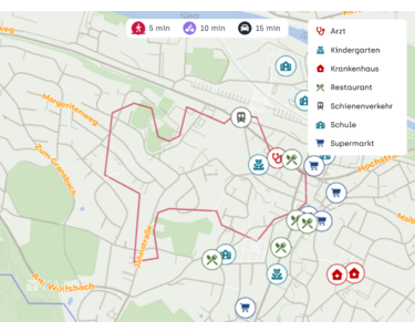 Für den täglichen Bedarf ist bestens gesorgt: Mehrere Supermärkte, darunter ein REWE, befinden sich in der Nähe und sind schnell zu Fuß erreichbar. Auch Apotheken und Drogerien wie dm sind in der Umgebung vorhanden, sodass Sie alle wichtigen Einkäufe ohne großen Aufwand erledigen können.