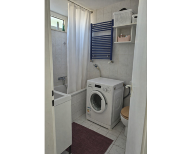 Das Badezimmer verfügt über einen Waschmaschinenanschluss, was zusätzlichen Komfort im Alltag bietet. Ergänzt wird das Raumangebot durch ein separates WC.