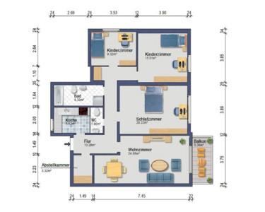 Die praktische Raumaufteilung überzeugt durch einen zentralen Flur, von dem aus Sie alle Räume bequem erreichen. Das lichtdurchflutete Wohnzimmer mit großen Fenstern lädt zum Entspannen ein und bietet Ihnen täglich einen wunderschönen Fernblick in die Umgebung. Die drei weiteren Zimmer bieten Ihnen flexible Nutzungsmöglichkeiten - ob als gemütliches Schlafzimmer, produktives Homeoffice, Kinderzimmer oder Gästezimmer.