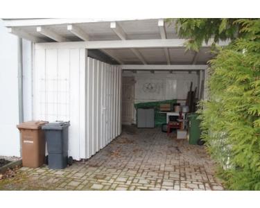 Im ca. 22,5 m² großen, dreiseitig geschlossenen Carport ist ein abschließbarer, ca. 3,7 m² großer Abstellraum abgetrennt.