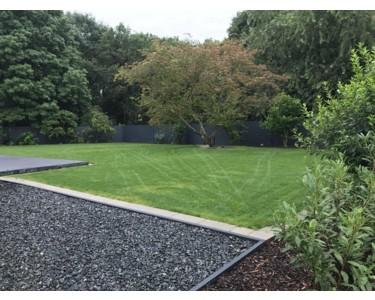Von aussen nicht einsehbares durch Mähroboter und Bewässerungsanlage pflegeleichtes Grundstück.