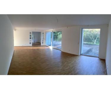 Sie gehen geradeaus in das grosse Wohnzimmer mit Essbereich, welcher direkt mit der offenen, hellen und zum Garten ausgerichteten Küche verbunden ist.