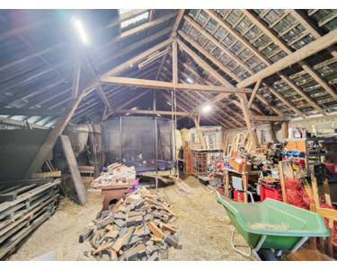 An das Wohnhaus grenzt ein großes Stallgebäude mit darüberliegender Scheune. Den Stall erreicht man auf kurzem Wege über einen Gang mit weiteren Lagerräumen. Hier befindet sich auch der Zugang zum alten Bruchsteinkeller.