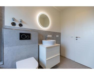 - Zeitlose, großformatige Fliesen im Bad (grau)