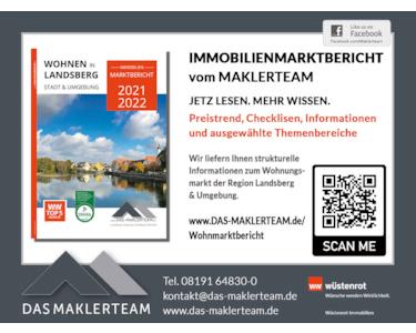 Angebot im qualifizierten Makler-Alleinauftrag. Bei allen Angaben handelt es sich um Angaben des Eigentümers bzw. Dritter. Trotz regelmäßiger Prüfung von Daten, Bildern und Informationen übernehmen wir keine Haftung für die Richtigkeit der Angaben. Ebenso wenig für die Verfügbarkeit des Angebotes bei Vermietung oder Verkauf. Die Informationen in Exposés und auf unseren Webseiten ersetzen keine persönliche Beratung! Wir behalten uns das Recht vor, Änderungen oder Ergänzungen der bereitgestellten Informationen jederzeit vorzunehmen. Copyright © aller Texte und Bilder: Wüstenrot Immobilien Landsberg.