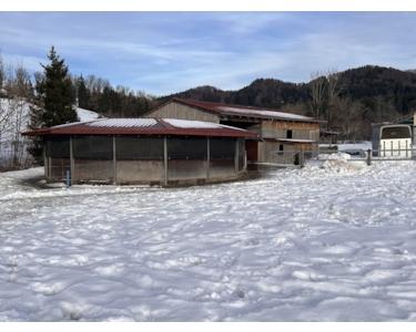 Weiter gehört das Stallgebäude mit Baujahr 2015/2016 mit 23 Pferdeboxen inkl. Sattelkammer und WC-Anlage sowie eine Heuhalle (Baujahr 2007) mit ca. 60m², die Führmaschine mit überdachtem Hufschlag, der Reitplatz und die Reithalle (Baujahr 2015/2016) mit einer reitbaren Fläche von 20x40m samt großzügiger, beheizbare Reiterstube mit Theke, Küche sowie WC-Anlagen für rund 60 Personen dazu.