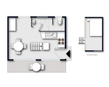 Grundriss Apartment 2 mit Empore (nicht maßstabsgetreu)