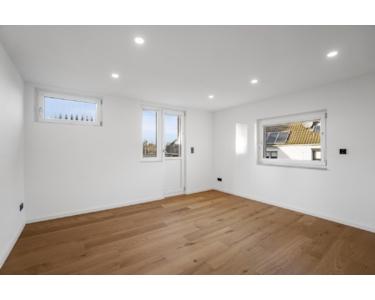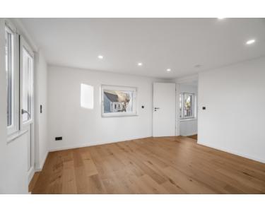 Im Obergeschoss befinden sich das neue innenliegende Badezimmer sowie zwei Schlafzimmer. Von einem der Schlafzimmer gelangen Sie auf die westlich ausgerichtete Dachterrasse, die zum Entspannen einlädt.