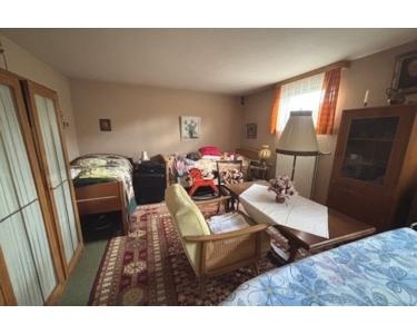 Das Erdgeschoss umfasst ein großzügiges Wohnzimmer, zwei Kinderzimmer, ein Elternschlafzimmer mit angrenzendem Wintergarten sowie eine separate Küche aus dem Jahr 1992. Zusätzlich befindet sich ein Badezimmer im Erdgeschoss. Die Zimmer sind gut geschnitten und bieten ausreichend Platz für eine gemütliche Einrichtung.