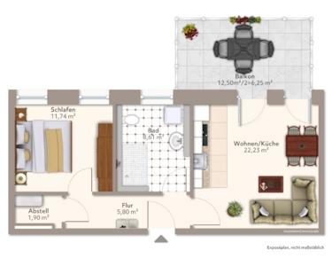 - 2-Raumwohnung mit 56,59 Quadratmeter