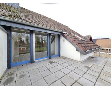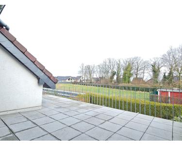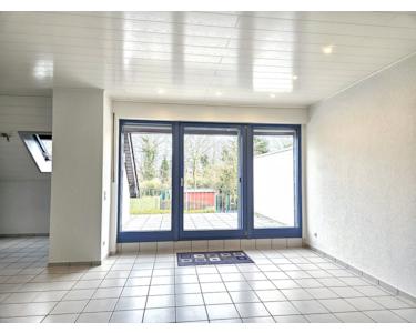 Vom Wohnzimmer im Obergeschoss aus betreten Sie die Dachterrasse in Süd-West-Ausrichtung mit schönem Ausblick.