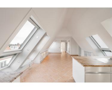 Diese außergewöhnliche Maisonette-Wohnung im Dachgeschoss bietet exklusiven Wohnkomfort und eine einzigartige Architektur. Ein besonderes