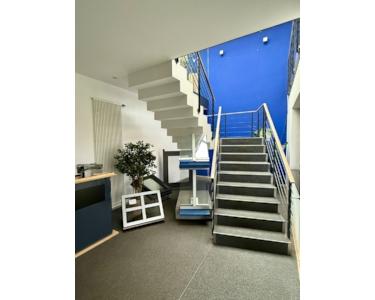Ein besonderes Highlight ist der offene, lichtdurchflutete Treppen- und Loungebereich mit Glasdach und modernen Designelementen, der dem Objekt einen hochwertigen und einladenden Charakter verleiht – ideal für den Empfang von Kunden und Geschäftspartnern.