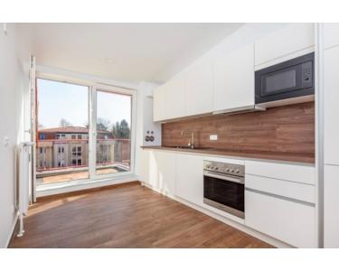 Wohnküche mit moderner Einbauküche & Balkonzugang