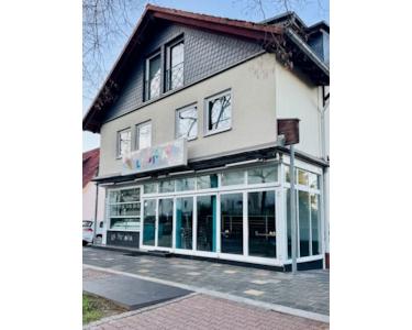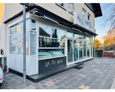 Die hübschen Gewerberäume mit großer Glasfront wurden in den letzten 25 Jahren erfolgreich als Eisdiele genutzt, wären aber auch für ein Café ideal.