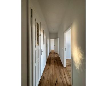 Schon beim Betreten spürt man den Unterschied: Die frisch verputzten, glattgezogenen Wände, die hochwertigen Einbauspots und das edle Parkett schaffen eine Atmosphäre, die zugleich warm, modern und absolut wertig wirkt. Hier wurde nicht renoviert – hier wurde mit Liebe zum Detail neugestaltet. Jeder Raum, jede Fläche, jeder Übergang zeigt Handwerk auf Niveau einer Erstbezugssanierung. Ergänzt wird dieses hochwertige Gesamtbild durch elegante Stiltüren und edle Sockelleisten im Hamburger Profil, die der Wohnung einen besonders stilvollen, hochwertigen Rahmen geben.